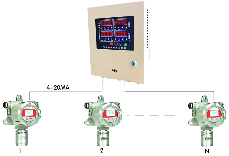 產品描述:四通道氣體報警控制器安裝布網方便,對多個監控點集中控制。各通道自動顯示,各通道自動巡檢、鎖定設定;具有時鐘顯示、報警時間查閱、自主設定、零點漂移歸位等新功能,且系統外型美觀、顯示界面直觀、清晰度高,操作非常簡單。并具有中文輸入功能,可直觀顯示每個探頭安裝位置,極大地方便了系統維護,免去需要牢記編號與安裝位置對應關系的煩惱。