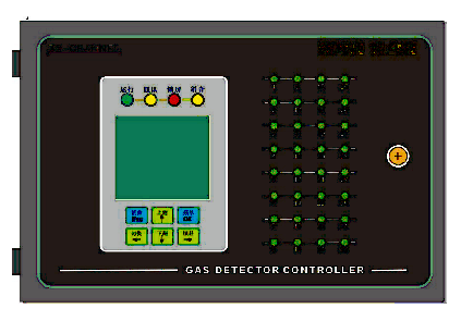 通道與彩色LED一一對應:藍色指示故障;綠色表示濃度正常;黃色表示一級報警(低報);紅色表示二級報警(高報)